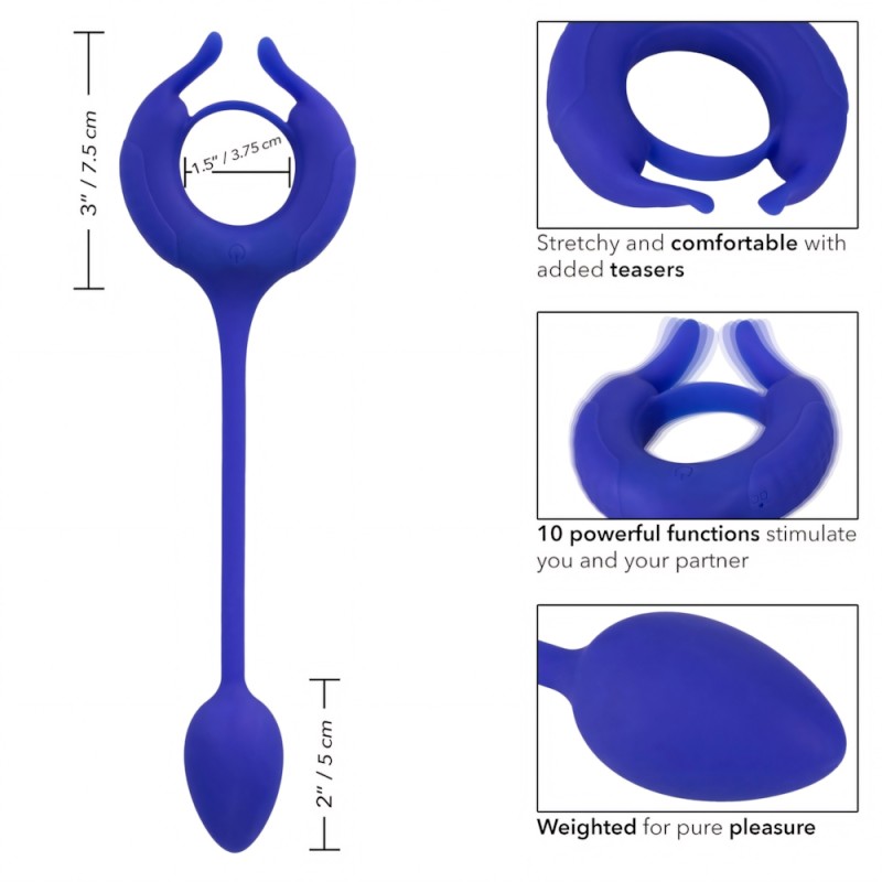 The Admiral Plug and Play Weighted Cock Ring will send you and your lover swinging into ecstasy. The stretchy Silicone vibrating enhancer has unique teasers, added weight egg, and 10 functions of powerful vibrations. The luxury cock ring is paired with a seamless egg weight meant to thrill with every swing and tug. Indulge in sensational swinging stimulation or get extra playful with the versatile anal probe function. Reach next-level pleasure with 10 functions of vibration and a flicking teaser made to leave your lady in a state of orgasmic bliss. As you reach the next level of pleasure, the dual motors and sensual ticklers will leave your lady in a state of orgasmic bliss.
