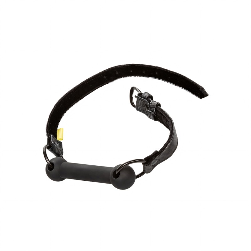Firm and pliable, body-safe Silicone bar gag. Fully adjustable with secure buckle closure. Soft and plushy interior with a vegan leather exterior. Double padded, double-stitched. Functional, durable and textured design.