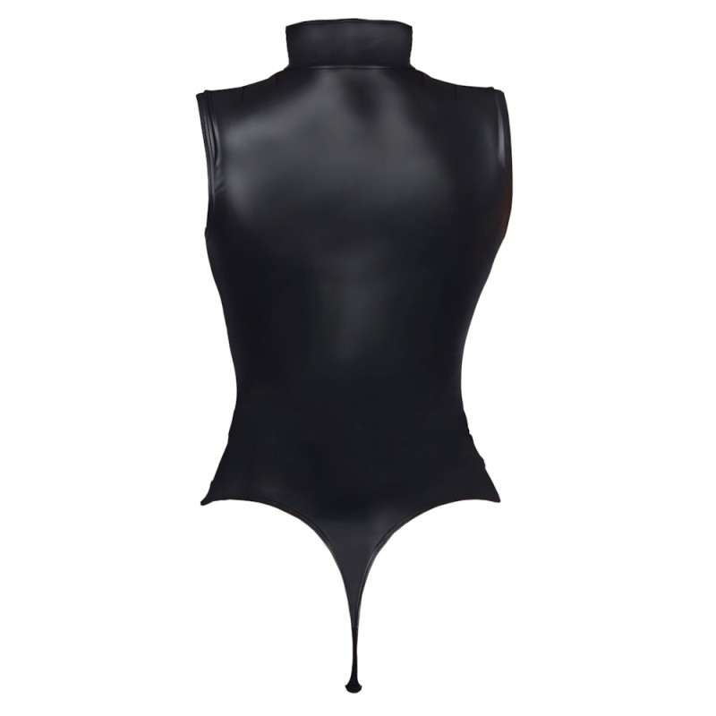 Body from Cottelli made out of stretchy matte look material that fits like a second skin. It is in a string design at the back and has high legs. There are also press studs in the crotch area. There is a large cut-out in the cleavage area. The stand-up collar has a hook fastener at the front.