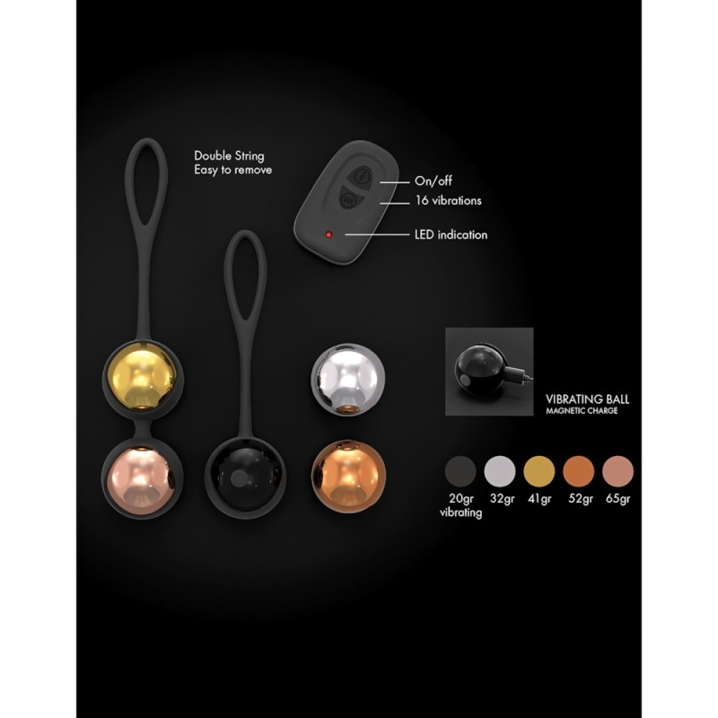 The training balls offer you 5 different balls with different weights. One of these balls is vibrating and can be controlled remotely with its remote control, allowing you to trigger the vibrations for waves of pleasure wherever you are.