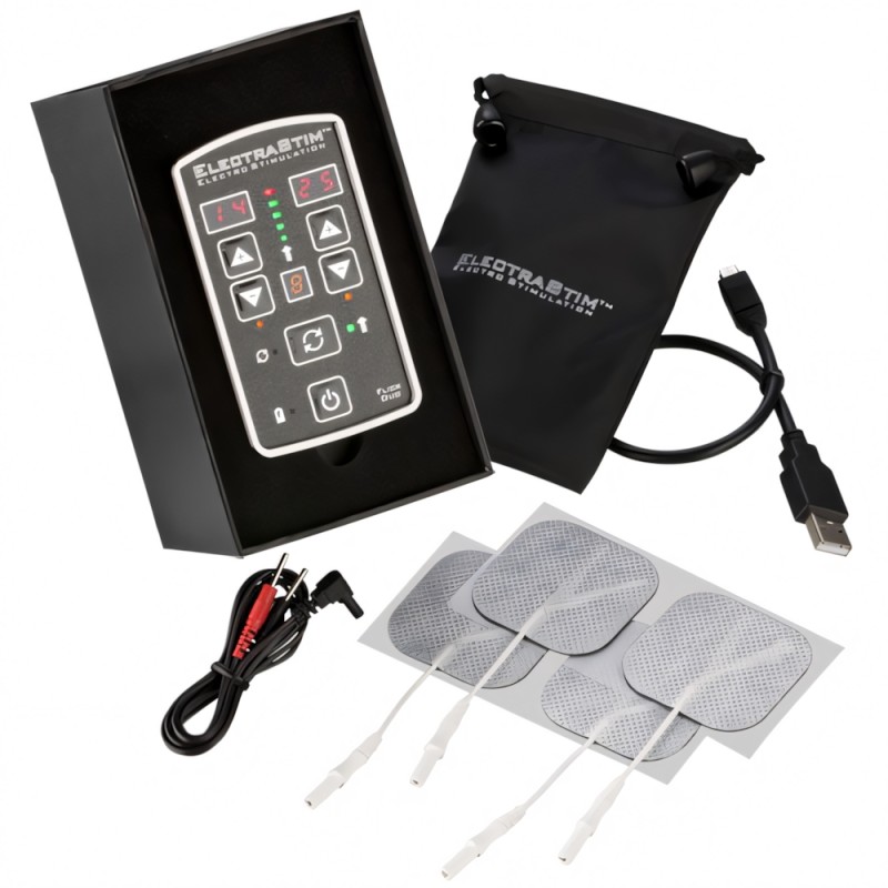 The ElectraStim Flick Duo is the worlds first rechargeable electro sex machine with 2 independent channels. Ideal for couples and power players who want to use more toys at the same time, Flick Duo can power up to 4 uni polar or 2 bi polar electrodes at once. Each channel is controlled independently, giving you more control over the sensations you feel and improving shared stimulation with your partner. With 8 pattern settings and 4 motion activated Flick settings to explore over 25 intensity levels, you will be spoiled for choice as you explore the titillating charms of this innovative stimulator. Small in size and big on function, you will love the sleek look and feel of this intuitive electostimultion device. We have included everything you need to get started, including 4 of our best selling ElectraPads so you are ready to play straight from the box.