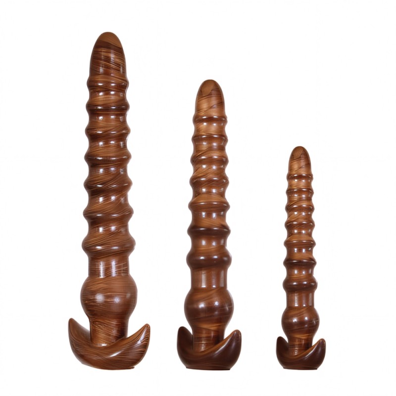 Screwing up has never felt so good! Give your back-door pleasure a twist with this 3-piece erotic ‘hardware’ set that swirls and sparkles. It’s made from firm yet pliable TPE rubber that’s alive with golden streaks and veins and features three traditional shaft shapes in small, medium and large sizes. Studded with rings for delicious incremental sensation, each flexible size offers a different girth for your mood. Tapered tip for comfortable entry. Wide safety base for blissfully easy navigation.