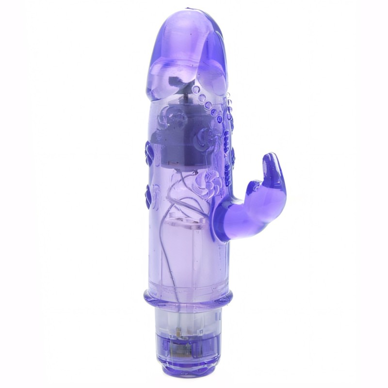 The stunning First Time Bunny Teaser Vibrator features a scintillating nine powerful and exciting functions of vibration, pulsation and escalation and is manufactured in purple coloured ABS plastic with a TPR rubber sleeve, and teasing and pleasing plushy soft bunny-shaped clitoris stimulation for exciting your hot bud.