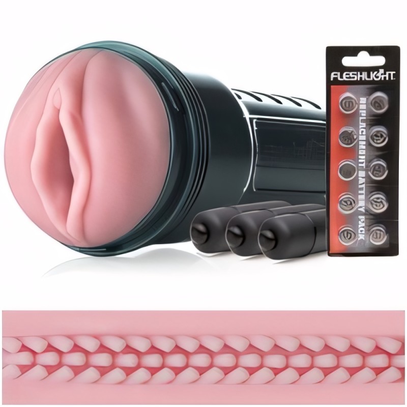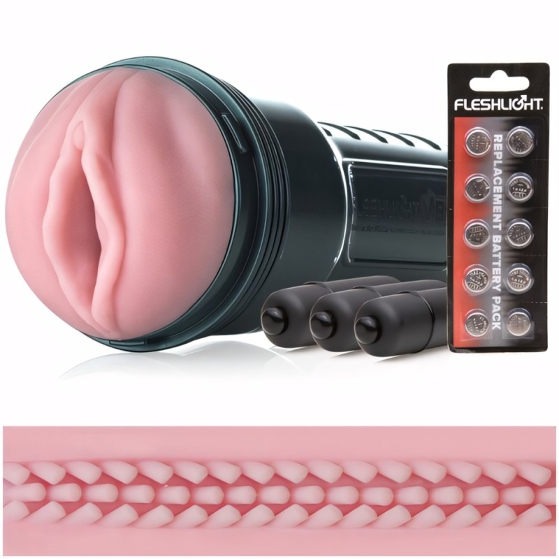 Each unit includes the Pink Lady Original Sleeve, a custom Gun-Metal colored plastic case, 3 Fleshlight Bullets and a 10-pack of extra bullet batteries