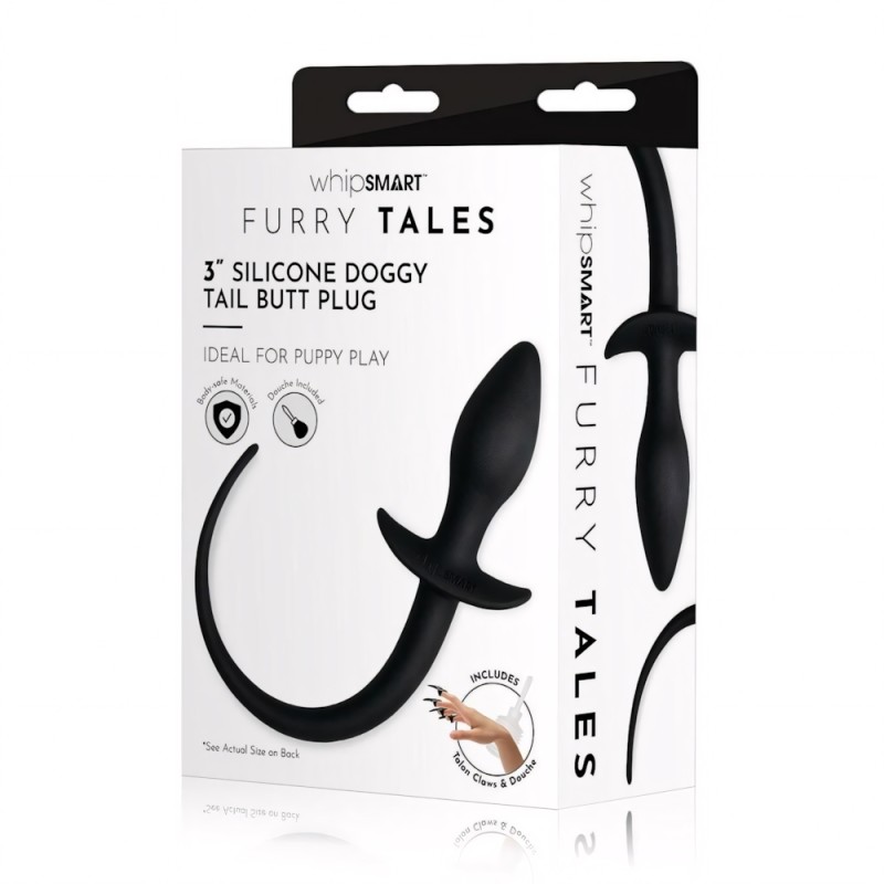 Unleash your wild side with this butt plug that's made for erotic puppy play. Made of body-safe silicone, it also comes with reusable talon claws for added sensory pleasure. With a 3 inch insertable length, tapered tip, and flared base, this plug is safe and easy to insert. Includes an easy-to-use douche for convenience.