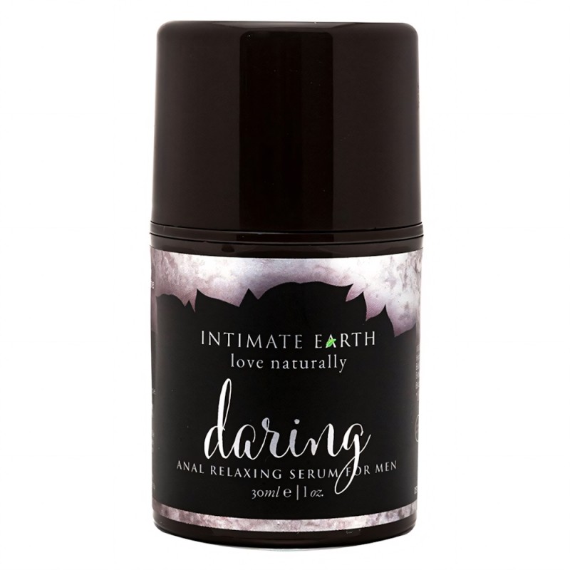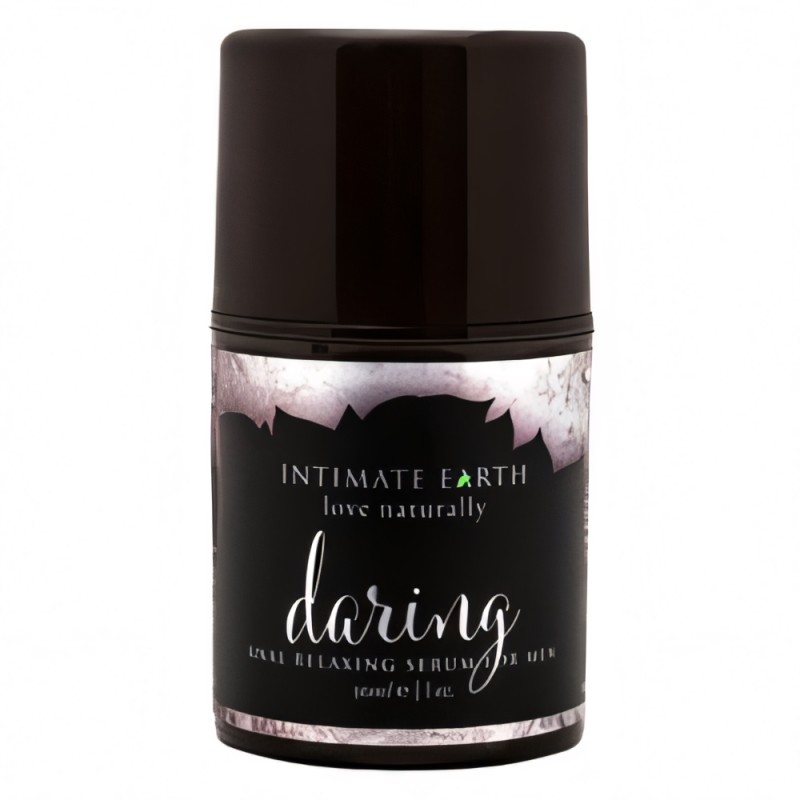 Unlike other anal sprays or gels that can numb the sphincter and lead to tearing, our herbal gel causes no aesthetic effects. The anal sphincter becomes relaxed and therefore penetration becomes more comfortable. Intimate Earths DARINGs unique formula contains a certified organic extract blend with the natural potency of clove, goji berry and aloe. Intimate Earths natural anal relaxing gel does not contain the synthetic compound benzocaine. DARING works quickly and is easy to apply. IngredientsPurified water-Aqua, Propanediol, Hydroxyethylcellulose, Polysorbate 20, Eugenia caryophyllus-clove-bud oil, Aloe barbadensis leaf extraxt, Cymbopogon schoenanthus extract, lycium barbarum-goji-fruit extract, Alcohol, Soduim benzoate, Potassium sorbate, Citric acid.