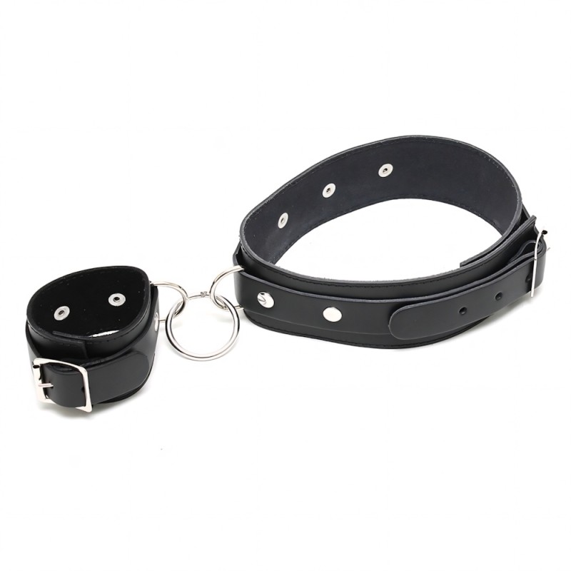Single genuine leather wrist to thigh cuff combination, adjustable with buckles.