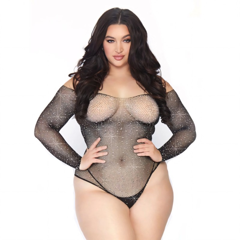 Leg Avenue Crystalized Long Sleeve Body Plus Size UK 14 to 18