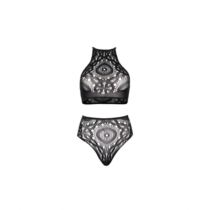 2 PC. Crochet lace halter crop top with a strappy back detail and matching high waist string.