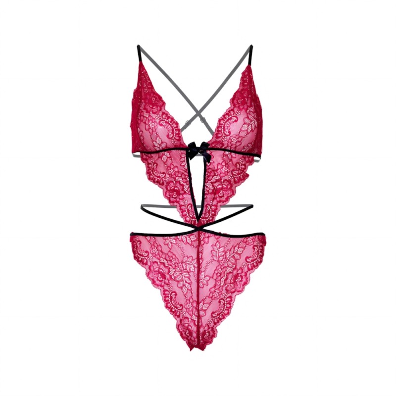 Scalloped lace wrap around teddy with adjustable cross over back straps and Brazilian panty.