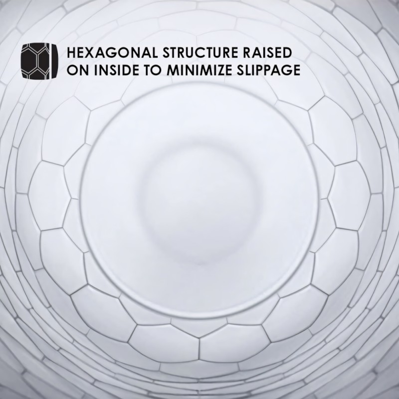 Perfectly smooth on the outside, textured on the inside, the hexagonal web within flexes and stretches to fit a wide number of shapes securely.