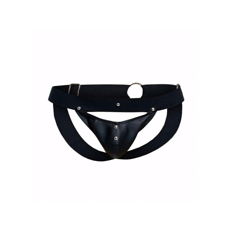 The Peekabo Jockstrap is made of strong faux leather in sleek black
