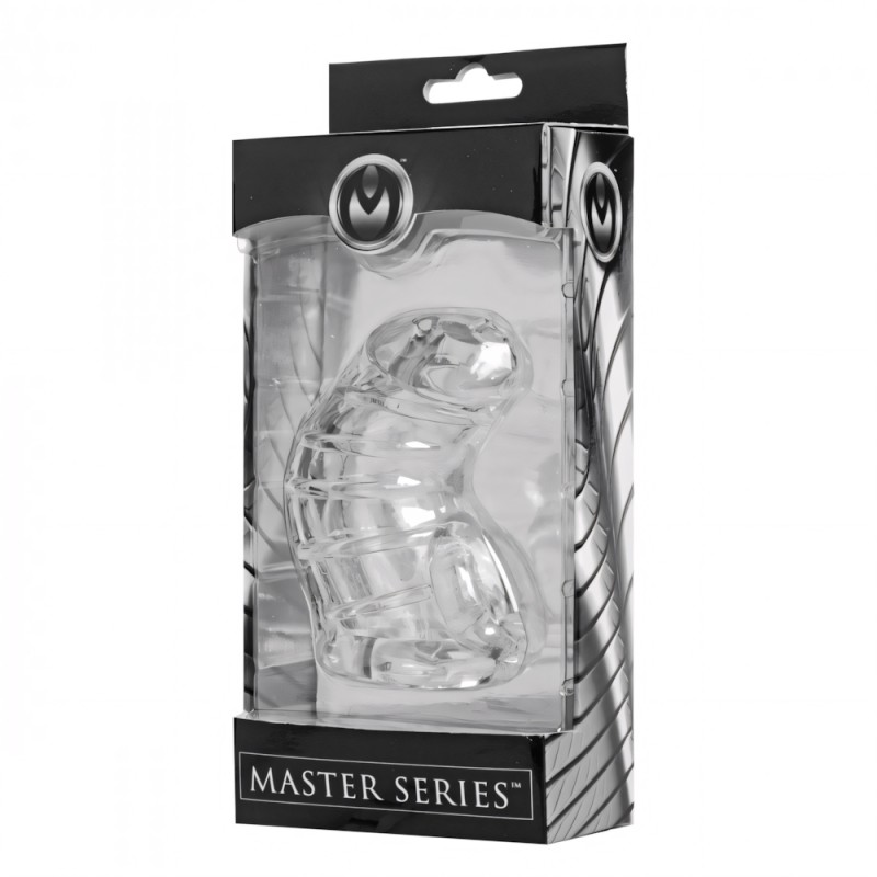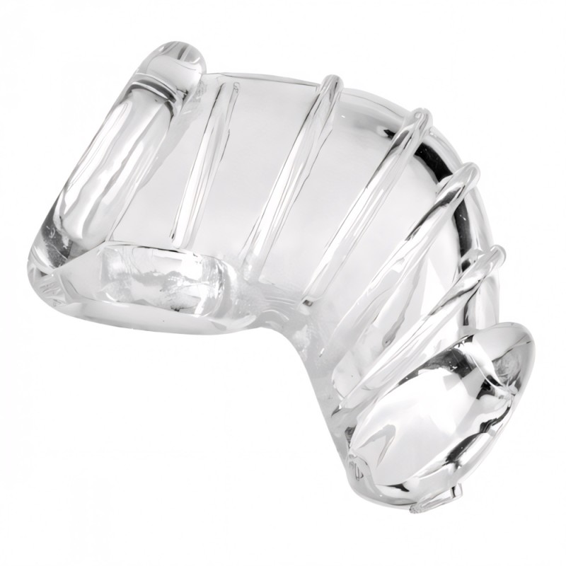 Featuring a stiff walled rubber cage, with a cum-through opening and separate cock and ball chambers, this soft body device is nearly undetectable under clothing.