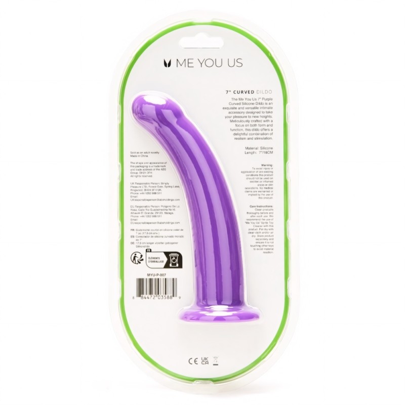 Whether you're a beginner or an experienced user, the Me You Us 7 inch Purple Curved Silicone Dildo is designed to cater to your desires. Its ergonomic shape and smooth surface make insertion easy and pleasurable, while the firm yet flexible construction allows for versatile play.