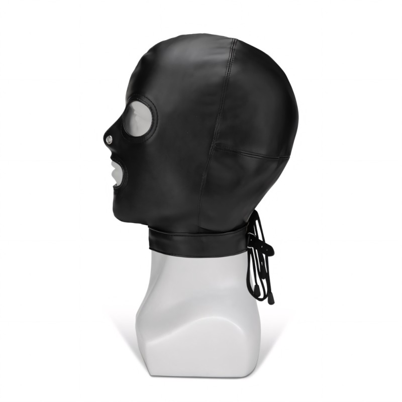Explore some erotic power play with this Hood from Me You Us. Made from a Black PU leather this fetish accessory delivers a desirable kinky look. This hood offers no restriction of your sight or breathing as it covers the head with cut-out holes for the eyes, nose and mouth, making it perfect for long wear during lengthy BDSM play sessions. Partake in all kinds of naughty role-play with this leather hooded disguise designed to fit comfortably as you take on your kinky adventures.