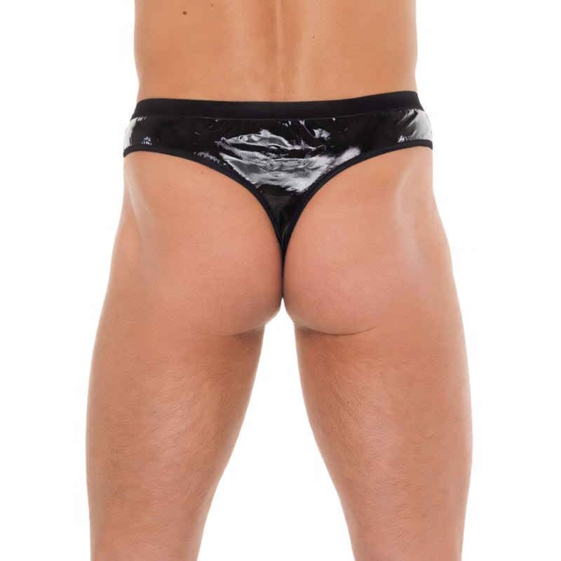 Mens Black G-String With PVC Pouch. One size.