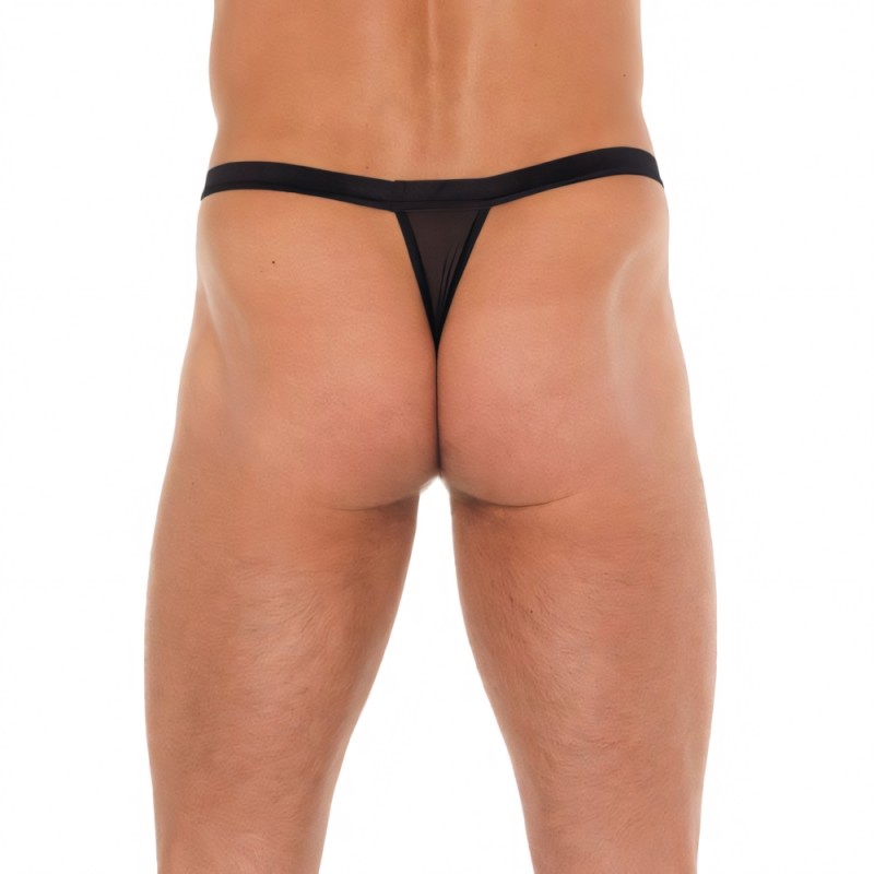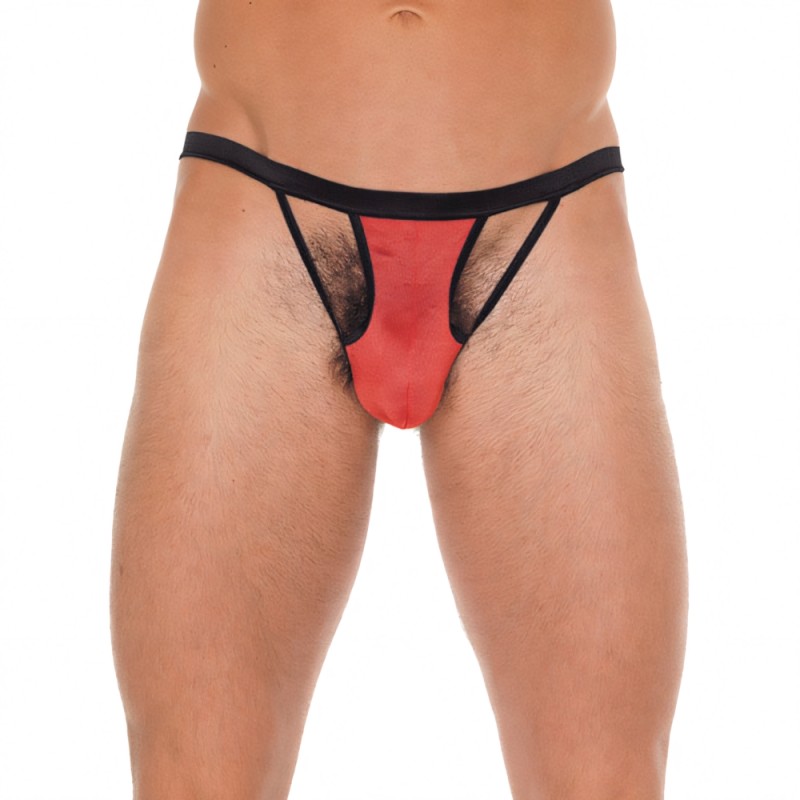 Mens Black GString With Red Pouch