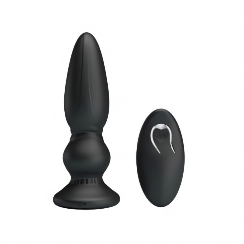 The black vibrating butt plug has a tapered tip for easy insertion. The shape has a variation in size. The anal plug has multiple vibration speeds, which can be controlled with the remote control. The vibrating butt plug has a Memory Function, which remembers the most used vibration mode for you.