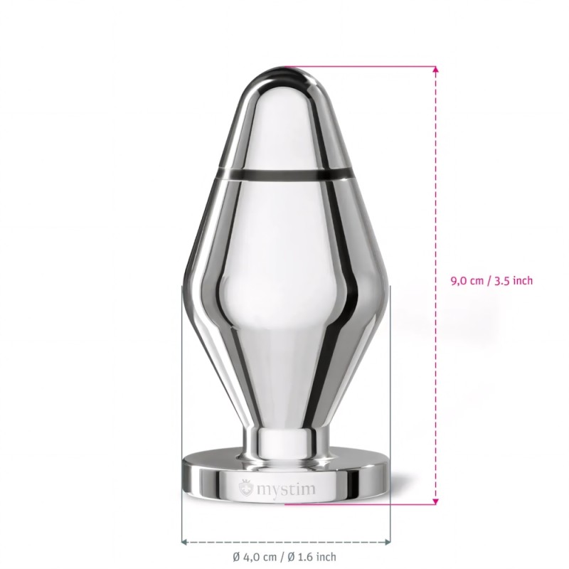 Little John is more than just a playboy and for that, he loves to vanish where the sun hardly ever shines. As his body of bright polished aluminium narrows towards his gently rounded tip it makes it easy for you to insert him, even if you are a virgin when it comes to anal toys. Theres a first time for everything and life is full of chances to deepen first experiences.Straight into happiness. Only a few centimetres and the two poles of this dinky Mystim butt plug are isolated already. To activate the electrical poles, you need a device like Mystim Tension Lover or Mystim Pure Vibes. And then, blimey Johnny, the electrical stimulation can kick in. Already as Johnny stretches you the current starts to tickle, to tingle and to pulsate nicely on you. You can even heat the party up by simply warming Little John on the heating before you play, or by cooling him down in the fridge.This tingly and lustful pleasure can entertain you for hours if thats your game. You can vary the stimulation in a way that drives you to one thrilling climax after another. Or you can save yourself mere moments before cumming. As you wish or as you adjust your Johnny.Little John is made of hygienic aluminium used in medical engineering. Just use some water and mild suds to clean it and regularly put some skin-friendly disinfection to it. After it is completely dried off it is ready for the next large-scale operation.Small is beautiful, you will not find a more accurate phrasing than this about Little John. The butt plug is made of hygienic medical aluminium and carefully polished by hand. Somebody that brilliant shouldnt go into hiding at all, but some benefactors simply love to work in secret. They love to work hard and with pleasure to create unforgettable moments. And they are hard to stop in their progress. Why cant just everybody have so much fun at work as Little John and his brothers Big John and Giant John.
