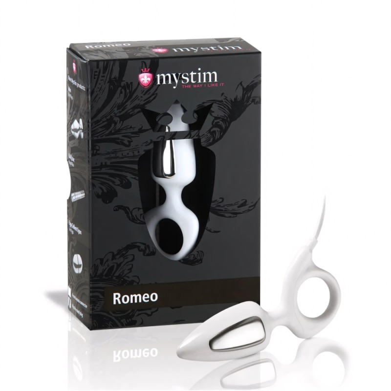 Mystims Romeo is an anal and vaginal probe that originally came from medical technology. Its lightweight and organic shape make it particularly appealing. The material mix of plastic and surgical stainless steel makes Romeo particularly light so that it does not slip even if you move or even walk around during stimulation. Romeos ergonomic shape makes it particularly comfortable, gentle and even during use.Thanks to its slim, tapered shape, Romeo is particularly easy to insert and, thanks to the plastic ring, just as easy to remove. This makes Romeo ideal not only for electro-stimulation newcomers but also for connoisseurs in the fetish area and for everyone who loves something special.MyStim toys are made of material that is also used in medical technology. They are therefore very hygienic and easy to clean with water and mild soap. You should also use a disinfectant that is kind to the skin at regular intervals. Before using your probe again, please let it dry completely first.