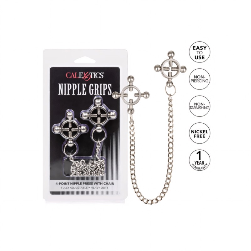 Push sensation to the next level and enjoy teasing nipple play with the Nipple Grips 4-Point Nipple Press with Chain.