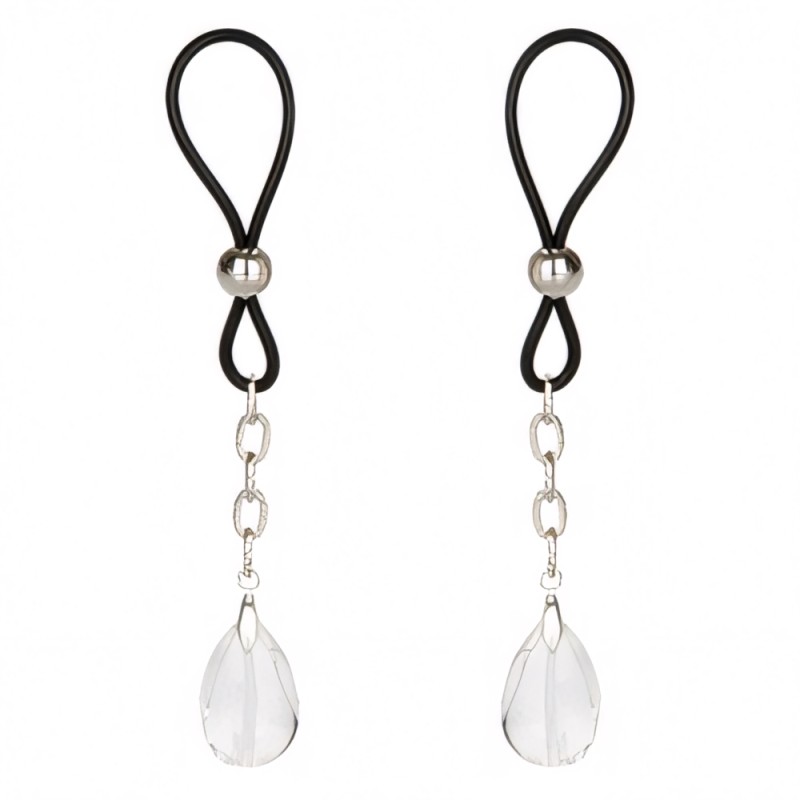 Push sensation to the next level and enjoy teasing nipple play with the Nipple Play Non-Piercing Nipple Jewelry Crystal Teardrops. Explore elevated sensation with the 2 fully adjustable nipple jewel adornments, pliable cinch and sparkling crystals. One glance at the sparkling crystal jewels will inspire frisky fantasies and make your lover's appetite water. Inspire feelings of sensuality, confidence and arousal when you tighten the slip cinch.