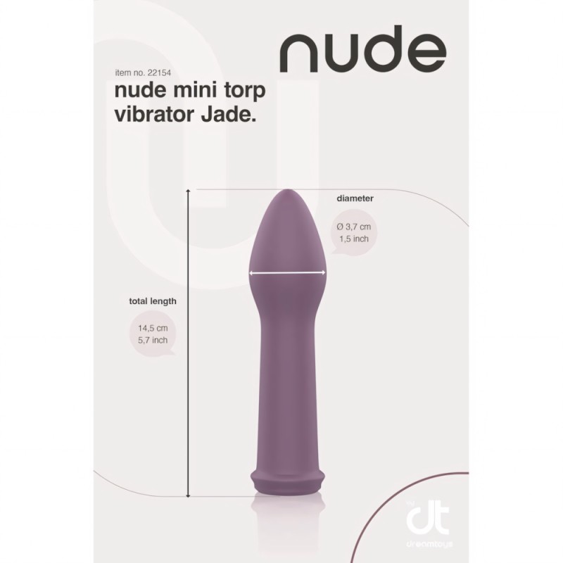 This Nude Mini Vibrator has a torpedo shape for easy penetration. It’s easy to operate too, thanks to the single button that can be used to cycle through the 10 strong vibrations. Jade has 7 rhythms and 3 speeds. The shape and size make it perfect for beginners. The Nude mini vibe is made of smooth soft silicone and ABS, free of phthalates and body safe. It has an IPX6 rating for water resistance. For charging after use the vibrator has a waterproof charging hole. A USB pin cable is included. After a full charge your Nude vibe is ready for 90 minutes of nudelicous delight.