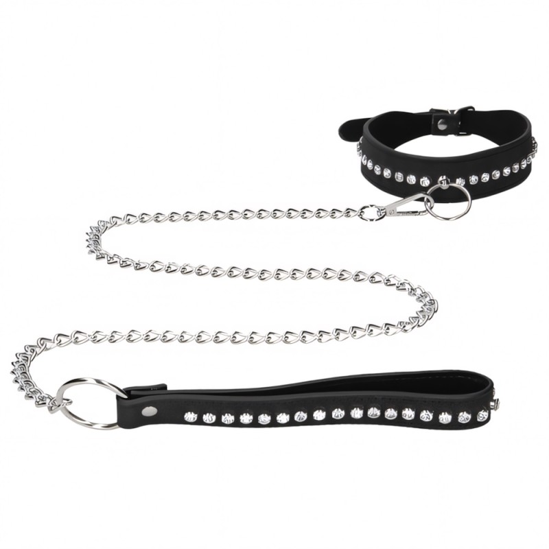 Get ready to please or receive in the intense Diamond BDSM line. Glamorously tough, the perfect combination of firm (faux) leather and glamourous diamond studs will turn you into the star attraction of the night. Collar and claim this adjustable Collar is gorgeous on its own but is even better with the Leash. The Collar offers 4 different sizes and has a sturdy, yet comfortable feel.