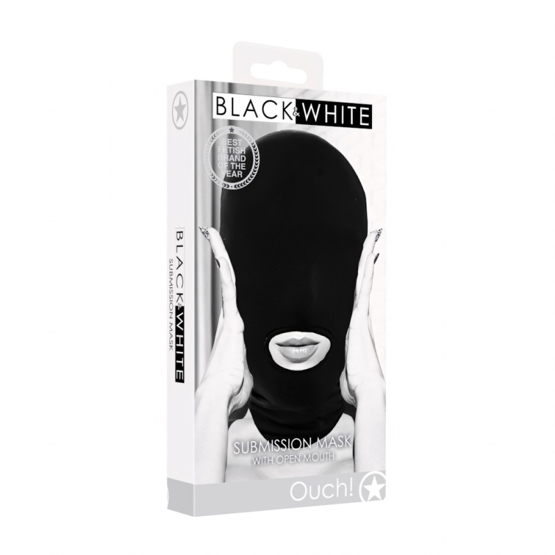 This comfortable Submission mask is designed to stretch completely over the head. The fabric allows just a hint of light in while impairing vision and awakening other senses. The shiny hood can be worn by him or her, and the thin lightweight fabric makes breathing and hearing a snap. Best of all, you still have access to your subject's mouth!