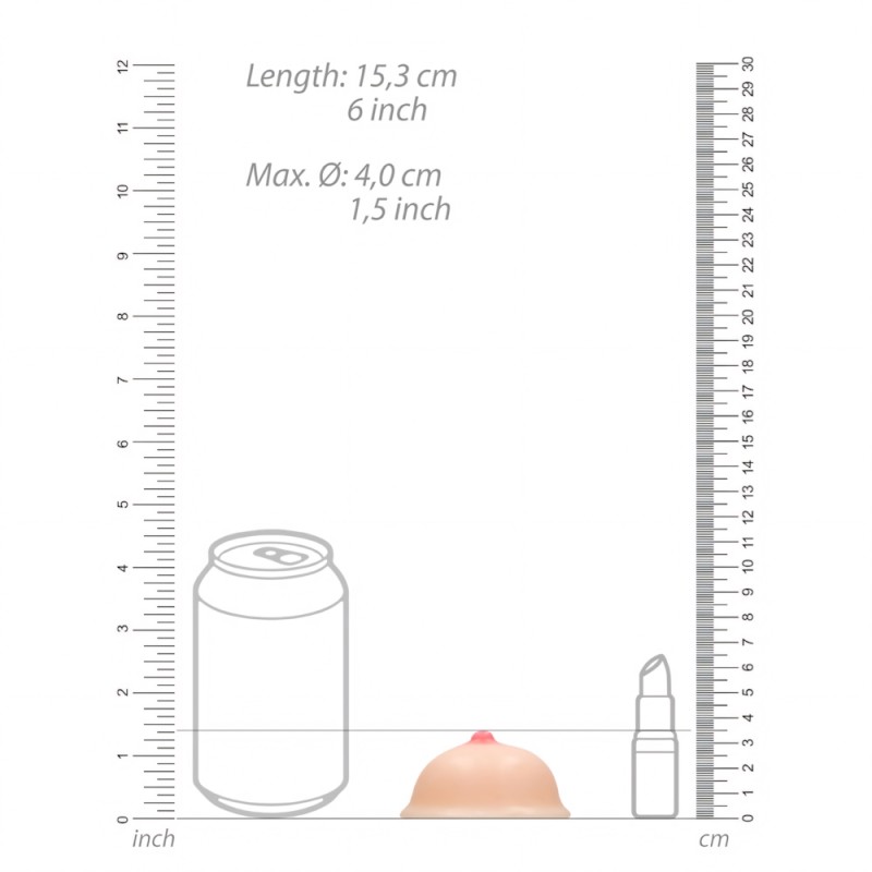 The S-Line Titty Soap has a diameter of 7.3cm, 2.9 inches, and a height of 4.4cm, 1.7 inches including the lifelike nipple.