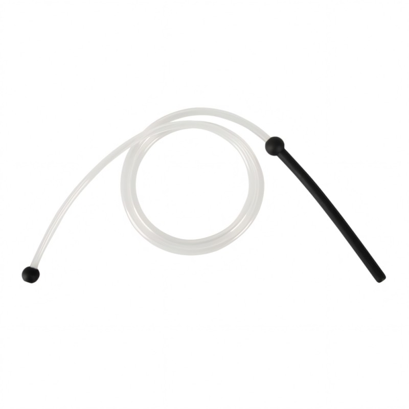 Hollow Piss to Mouth Dilator from Penisplug with a fixed tube and mouthpiece. Everything is seamlessly manufactured and pleasantly flexible and elastic for carefree play and wear. With its length of 75 cm, the transparent tube is long enough even for self-tasting.