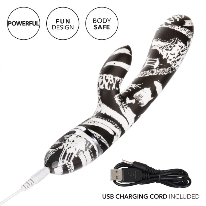 This intensely powerful rabbit vibe has 2 intense vibration motors, flickering bunny tickler and 10 powerful functions of vibration. Send high-intensity pleasure radiating throughout your body with the two powerfully stimulating motors.