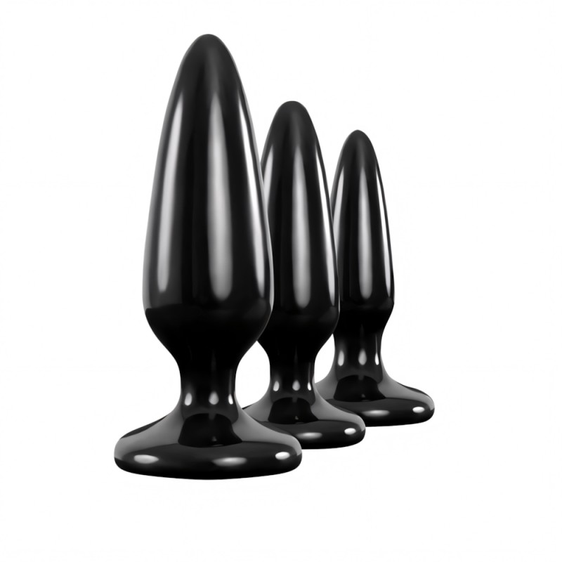 Your training starts today with Renegade's Pleasure Plug Trainer Kit. Featuring three varied sizes of sturdy, tapered plugs, this training kit provides a safe and enjoyable way for you to expand your sexual horizons.