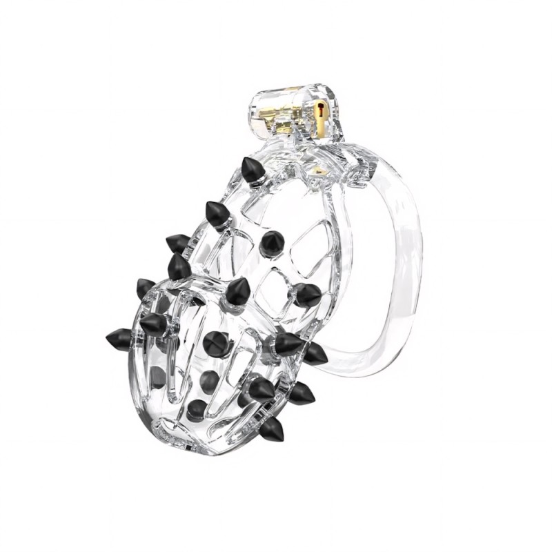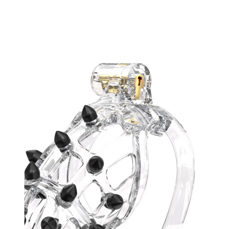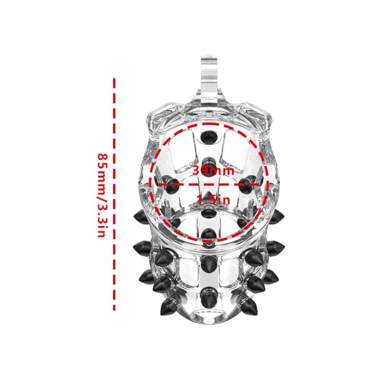 The opening at the front of each P-Cage allows the wearer to urinate without removing the cage. This penis cage set includes 5 rings in different sizes, ranging between 43 - 55 mm. In addition, it includes 1 copper built-in lock and 3 plastic numbered padlocks. The plastic locks can be cut off with scissors after a single use. Finally, one plastic screw is included as an alternative to the copper built-in lock, which may not pass airport security checks, while the plastic lock is airport-friendly.