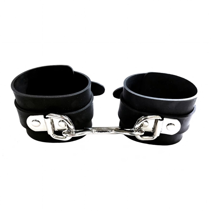 An exquisite pair of rubber restraint wrist cuffs. Fully adjustable buckle straps made of comfortable quality rubber.