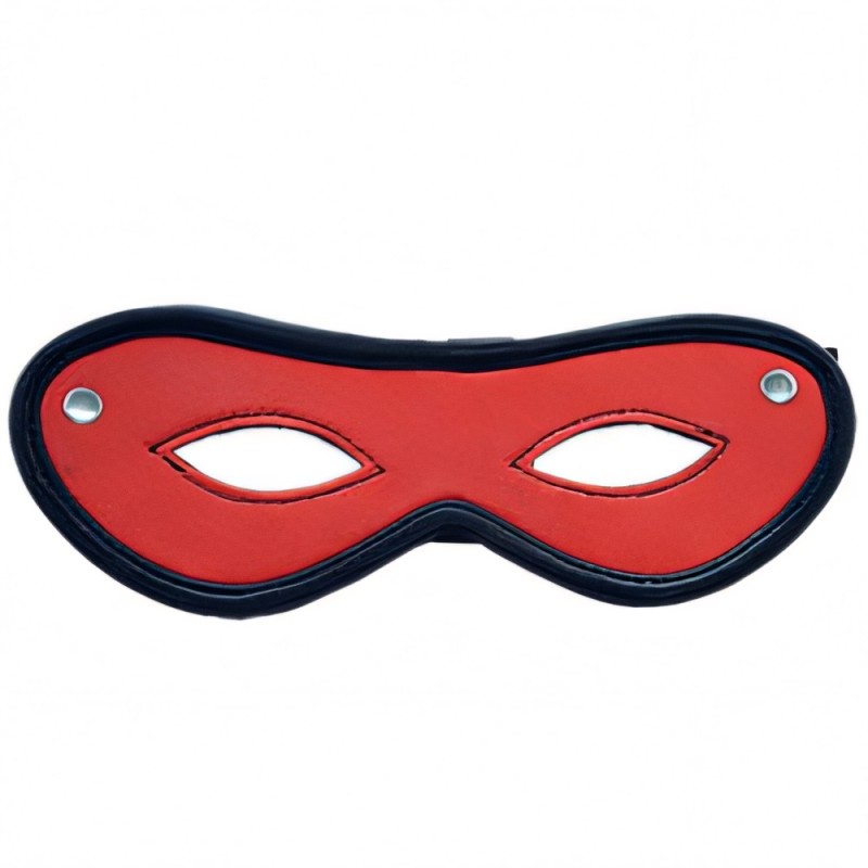 Leather eye cut mask with elasticated strap to fit all sizes.