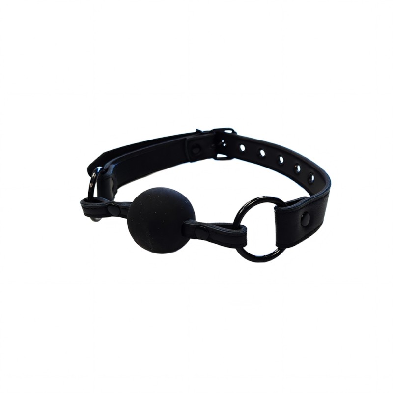 An exquisite leather ball gag with an adjustable buckle strap and a rubber ball.Fully adjustable buckle straps. All black with black Accessories.