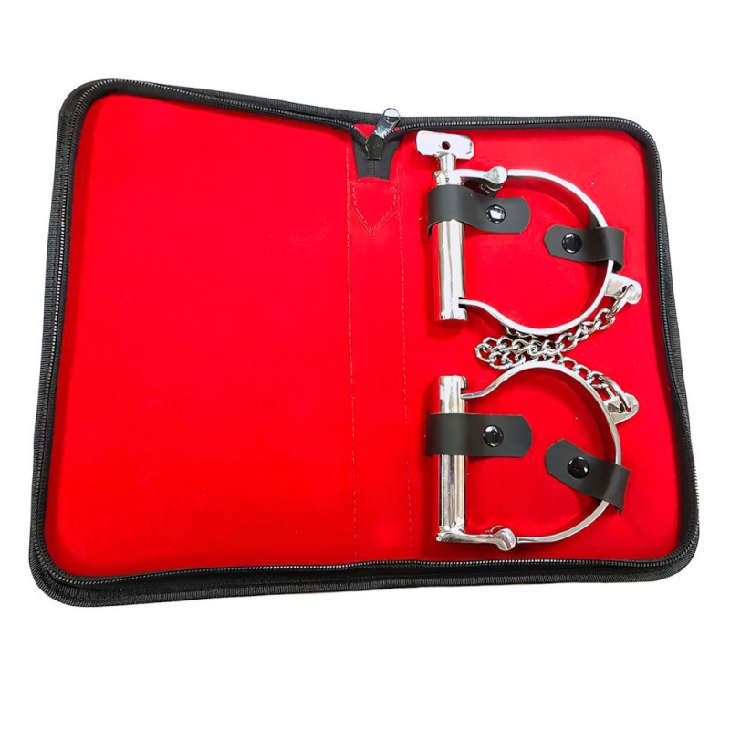 Ankle shackles are finely polished and are made using heavy stainless steel and come with a 7 Inch chain between the shackles. The shackles come with one turning key. The inner diameter is 7.9 cm. Matching wrist shackles are also available these are sold separately.