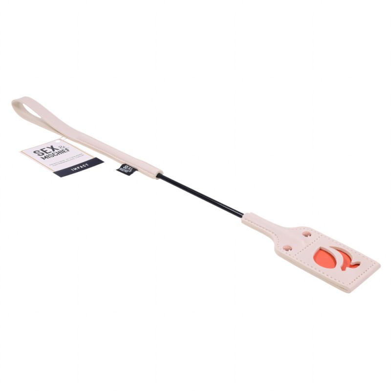 Prepare yourself for a playful adventure where naughty meets nice with the Peaches ‘n CreaMe Peach Impressions Crop! Crafted for those who like a bit of flirtation with their domination, this riding crop brings lighthearted silliness to every swat of your bottom! With a playful peach cutout on the looped tip, each swat delivers a delightful impression that's as sweet as a peach. The sturdy handle ensures a firm grip, while the peachy details pair perfectly to your playful pursuits.