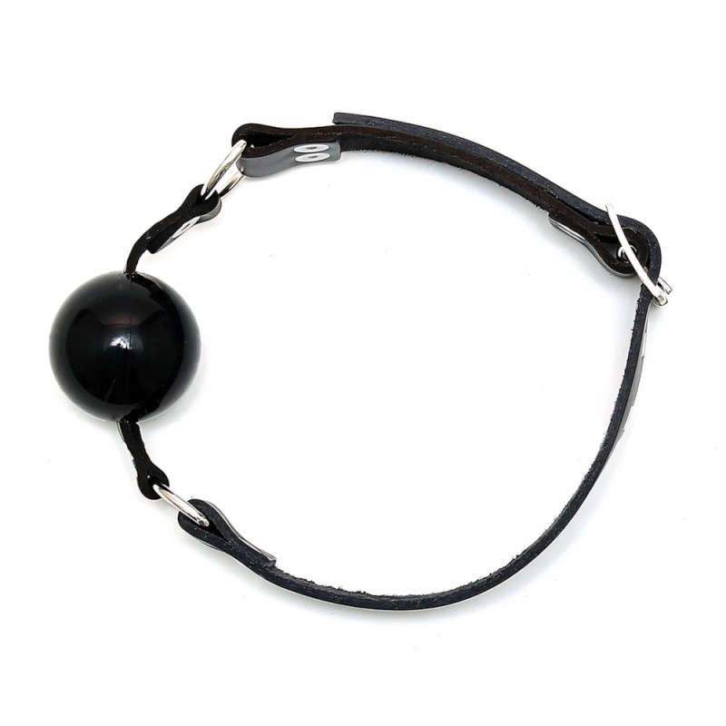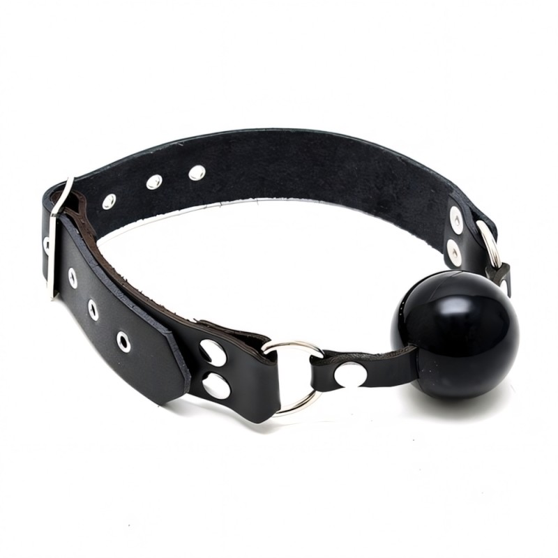 Genuine leather gag with rubber ball, adjustable with buckles.