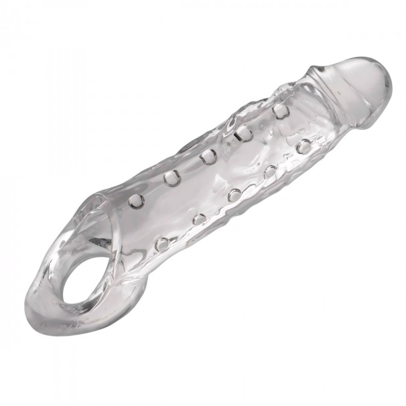 Men can enjoy a bigger, thicker, longer lasting erection instantly, with no pills, creams, or devices! Simply slip this sheath over your own cock, hard or flaccid, and instantly enjoy your new pleasure rod. Lined internally with pleasure nubs, and featuring a semitransparent design to let your true self shine through, this realistic looking sheath is a great and simple way to be a porn star in your own bedroom!