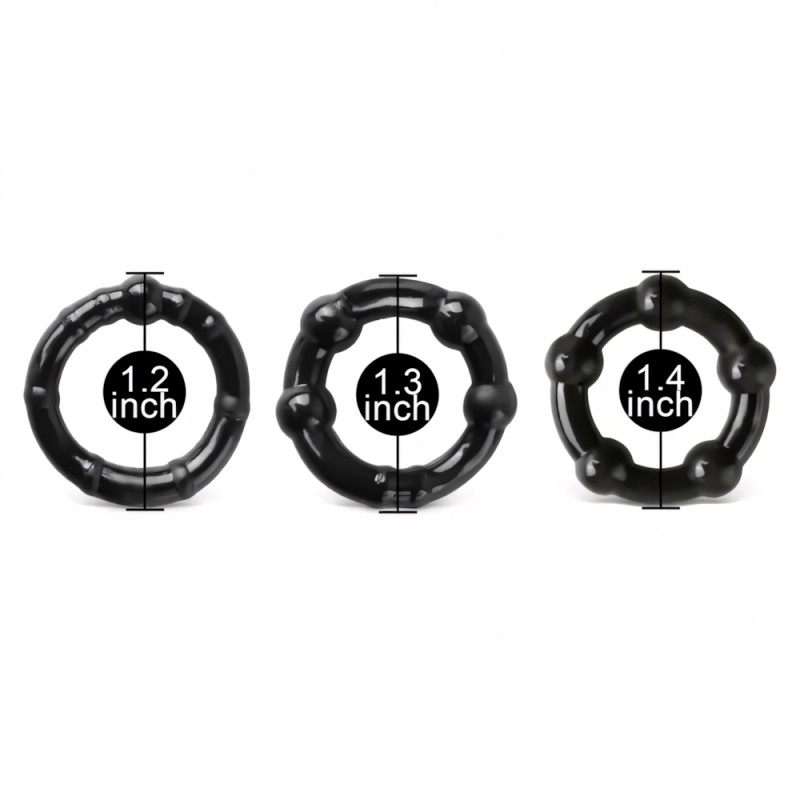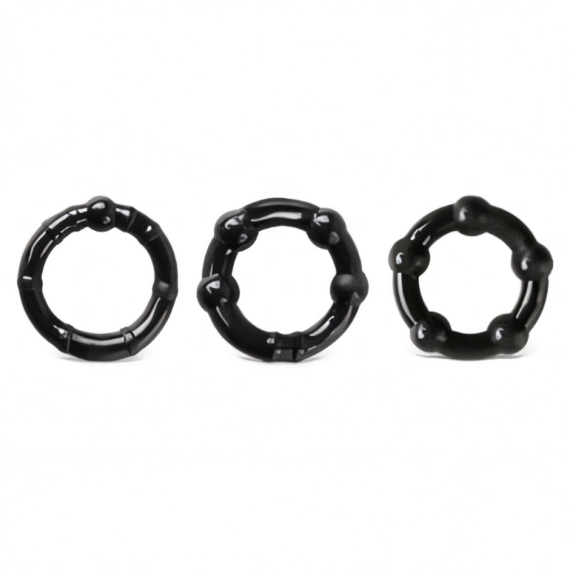 Black Triple Cockring Kit, consisting of 3 different sized beaded cockings, for a super hard erection.