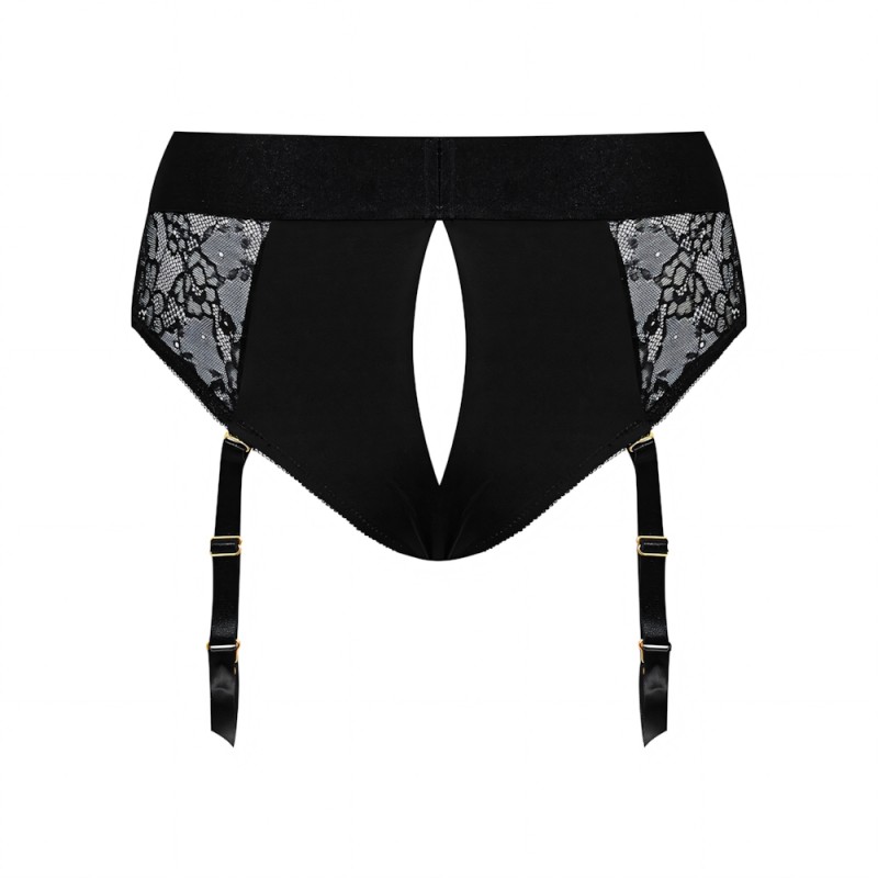 This lace harness will seduce you with its elegance and comfort with its second-skin design. It also has an elastic waistband and adjustable garter belts to maximise your comfort.