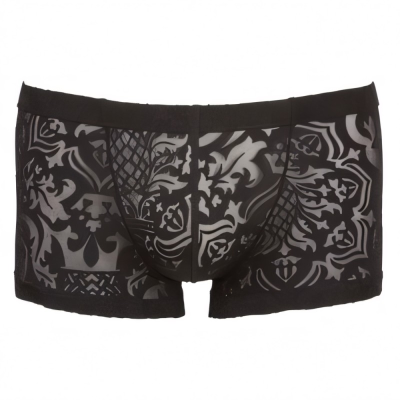 Soft pants in a black transparent devoré style. The waistband is covered in fabric. 50% polyamide, 42% modal, 8% elastane.