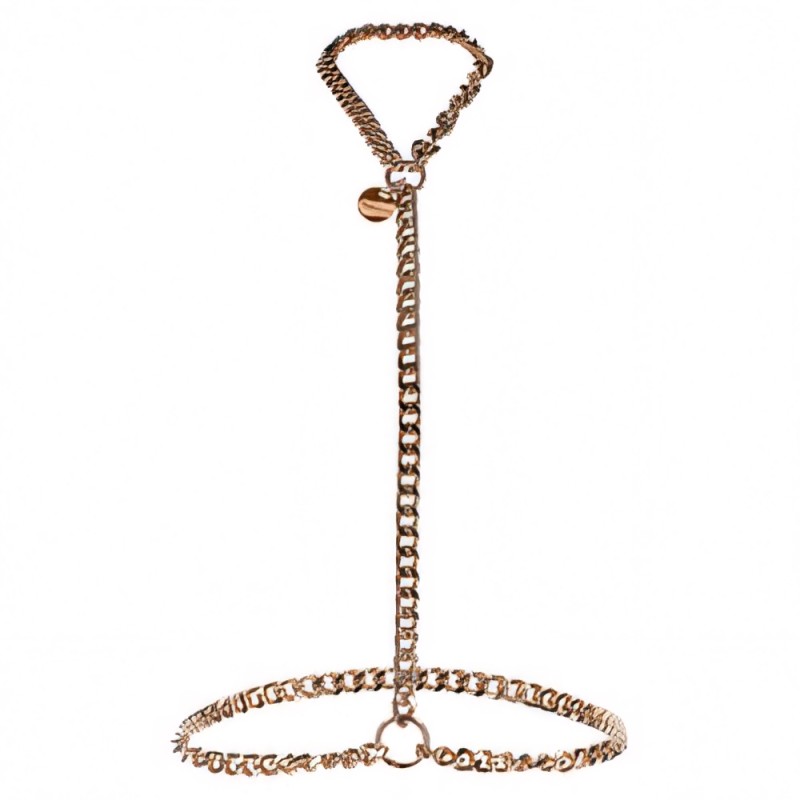 Dress less to impress with the TABOOM Dona Statement Harness. The harness is strong, made of lustrous rose gold metal and great for a kinky adventure. Or wear it as a sexy and stylish accessory. Let it cascade over your curves and demand the attention you deserve. Perfect to layer over evening wear or over bare skin for sexy seduction.