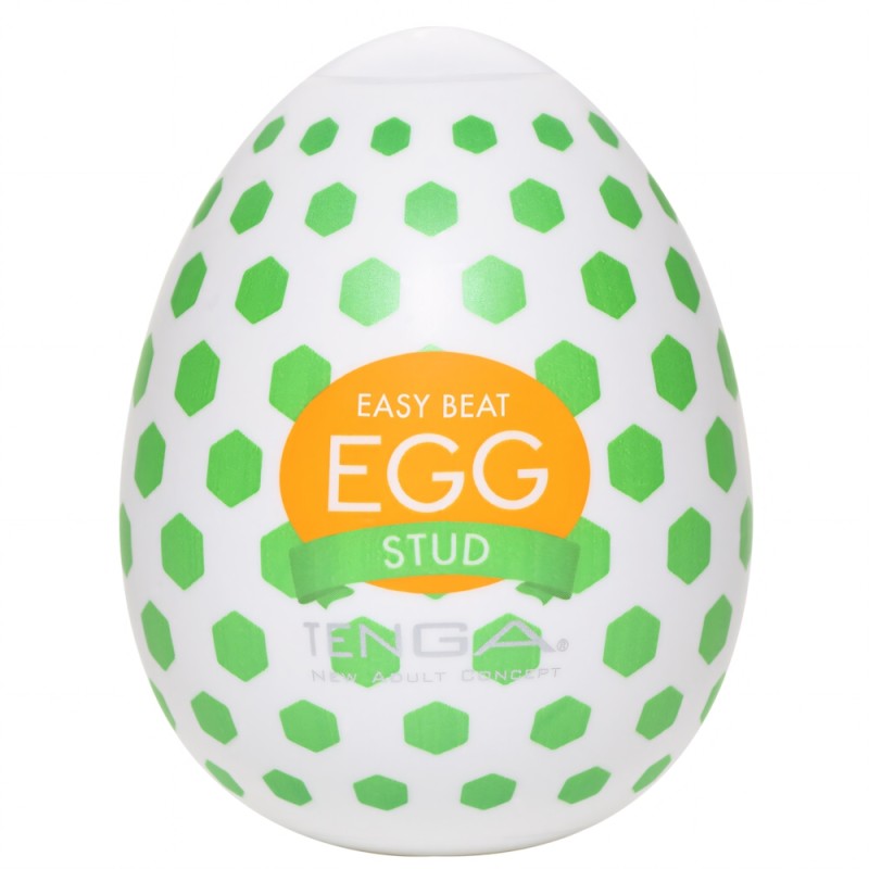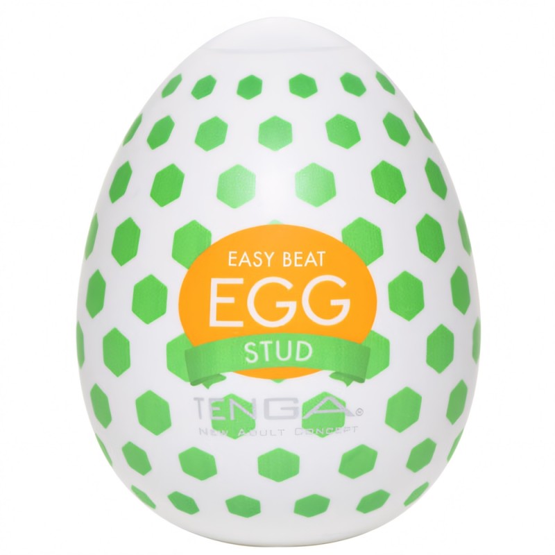 The compact, disposable masturbator Egg Stud from Tenga has an exciting, dotted stimulating texture inside. The very flexible masturbator sleeve is inside the egg-shaped case and can be used for a hand job with the included lubricant.