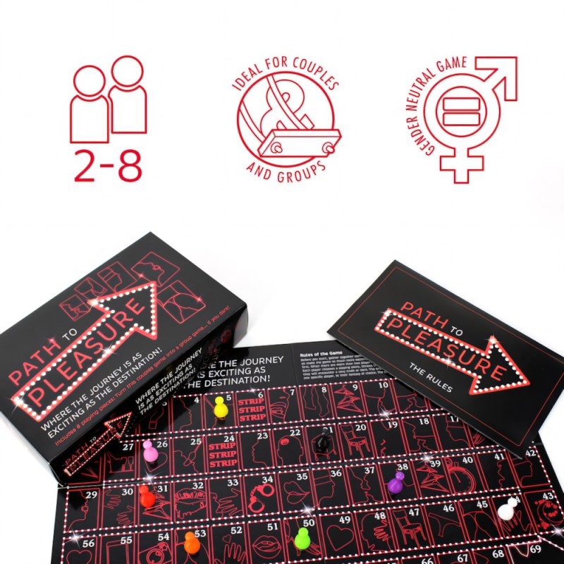 Awaken your senses and prepare for pleasure with the game that takes you on a journey of sexual discovery. Behind every square you will find an intimate question or sensual act to bring the two of you closer together. With three stages of excitement the game starts by awakening desire, moves through anticipation, building warmer challenges until it explodes in a crescendo of passion and pleasure.