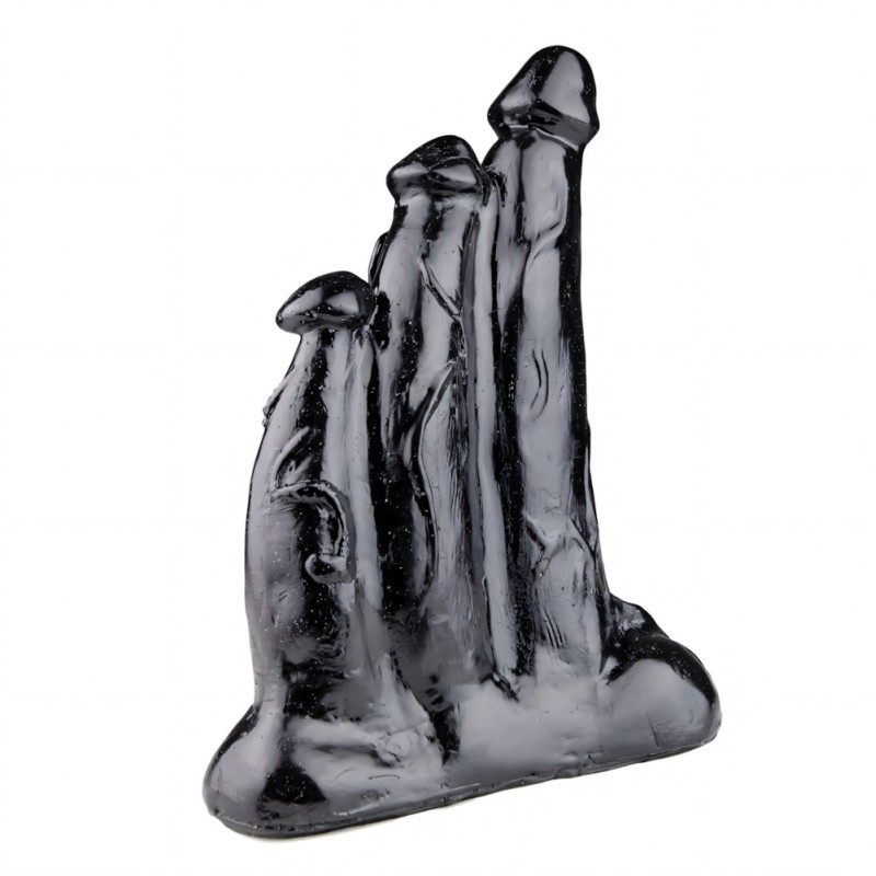 The shape of this amazing dildo is made up of 3 glued dildos inserting gradually. The sensations are extreme. The dildos are realistic with a veined surface. The base is flat.